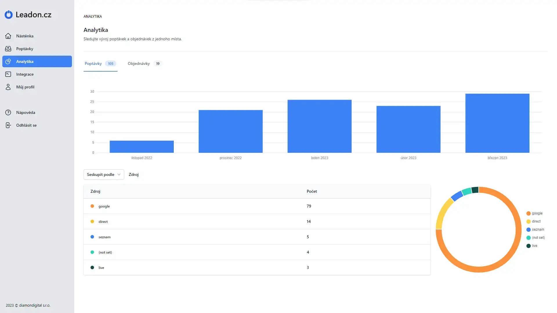 Mějte přehled o každé koruně investované do performance marketingu. S marketingovým nástrojem Leadon zjistíte, kolik vás stojí získání jedné poptávky a především její zobchodování. Dokážete tak efektivněji nakládat s rozpočtem a plánovat další marketingové aktivity.