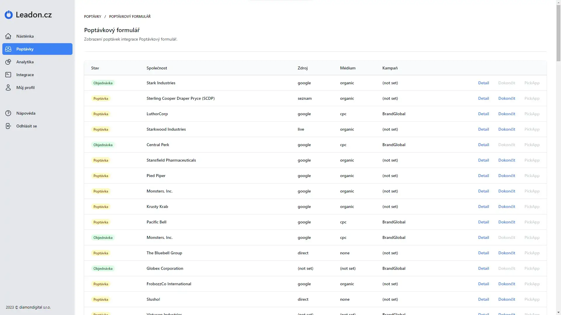 - Spravujte všechny poptávky přehledně z jednoho místa